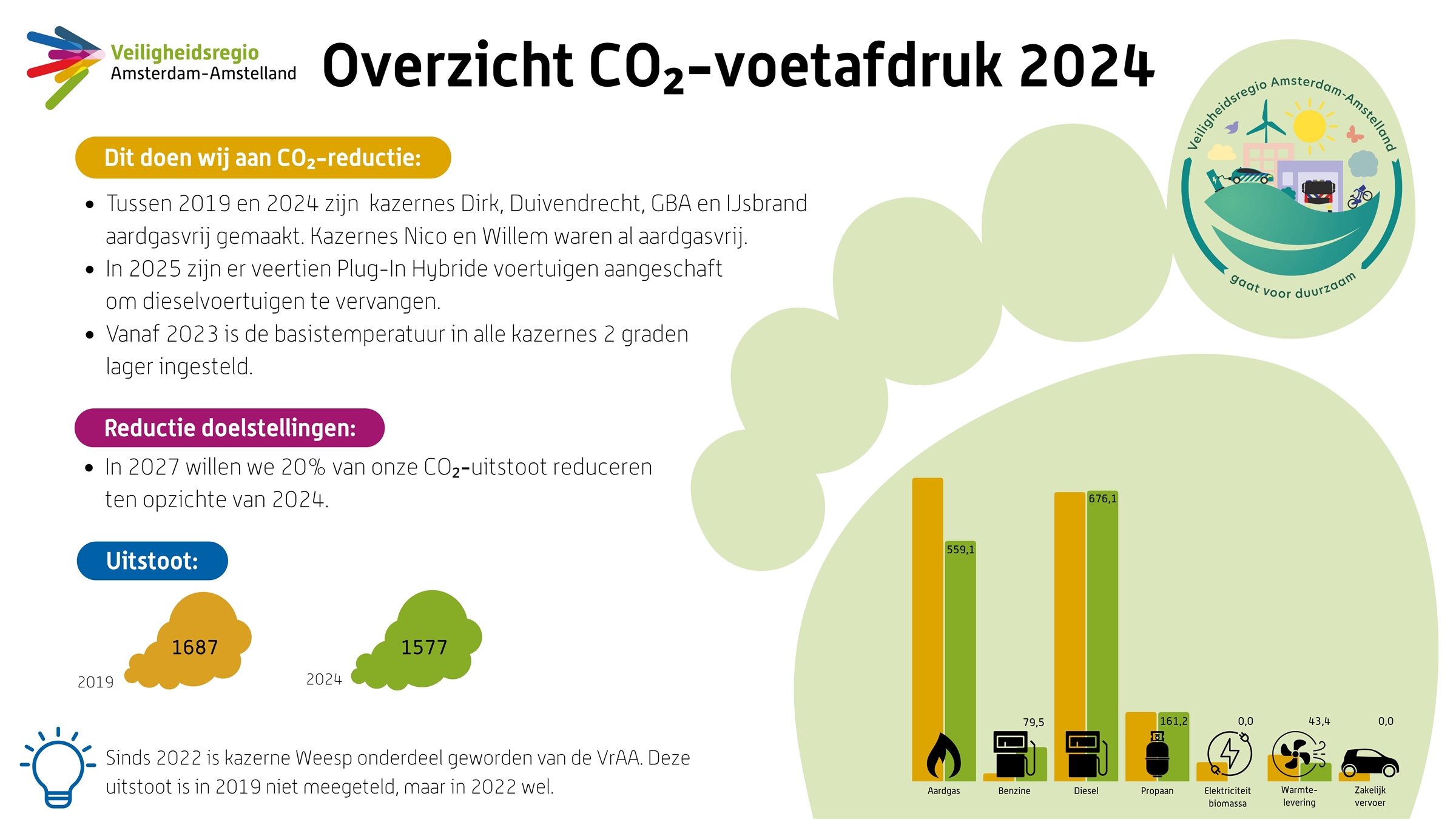Onze doelstelling is om in 2027 20% van onze CO2-productie te reduceren ten opzichte van 2024.